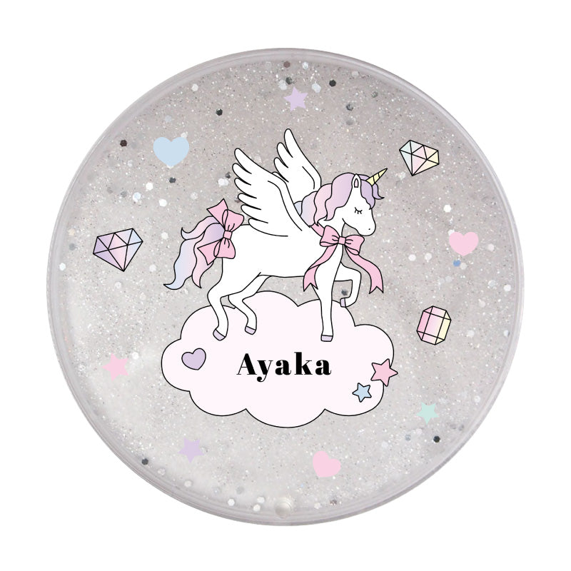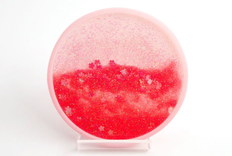 本体内部にはラメとオイルが入っており、コースターを揺らすとラメがスノードームのようにキラキラと動きます。綺麗な動きを見て楽しめるグリッターコースターです。