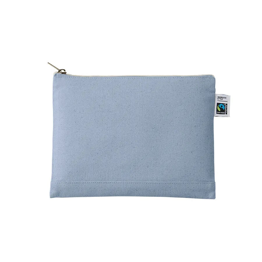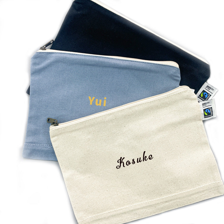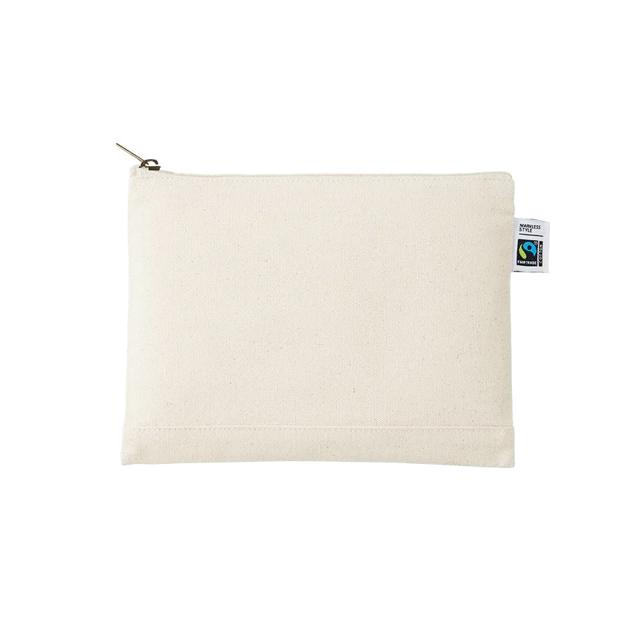 フェアトレードコットンを使用したキャンバスポーチ。10オンスの厚みがあるので中身が透けることもなく、丈夫な生地感。小さめのノートや文房具の収納や、スマホや雑貨などの小物ケースとして使用可能。 国際フェアトレード認証ラベル付きのアイテムなので、ノベルティとして活用することでSDGsへの貢献にも繋がります!