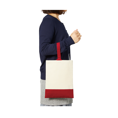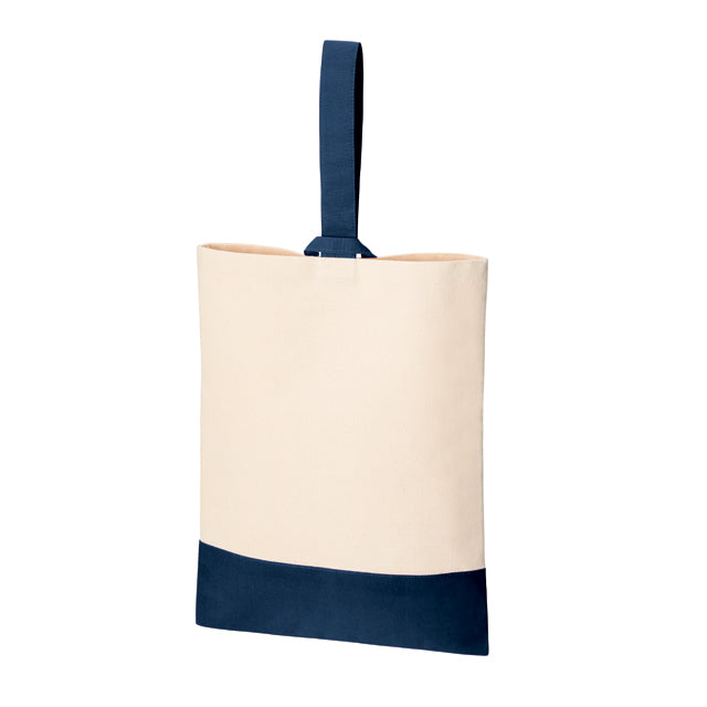 厚手のコットン素材でしっかりとした作りになっています。手持ち部分は出し入れ簡単なループタイプ。