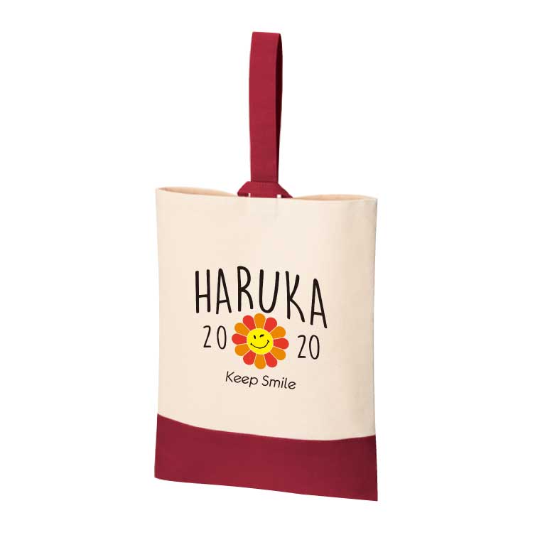 手持ち部分は出し入れ簡単なループタイプ、上履きや練習シューズ、スリッパ入れ等に使えます。